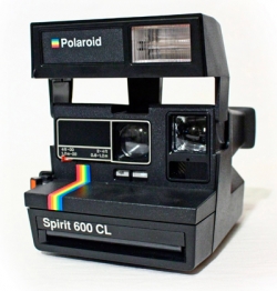 It was a Polaroid Spirit camera. The one I remembered my parents using when I was a child, the one from which came most of my baby pictures. The one I was so sad to hear my parents had "misplaced" or "gotten rid of". My mom pipes up: "I took all of my graduation photos with this, sweetheart." It was in front of me, in all it's glorious vintage charm.